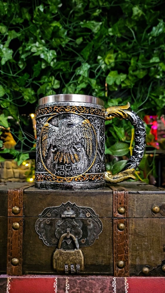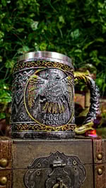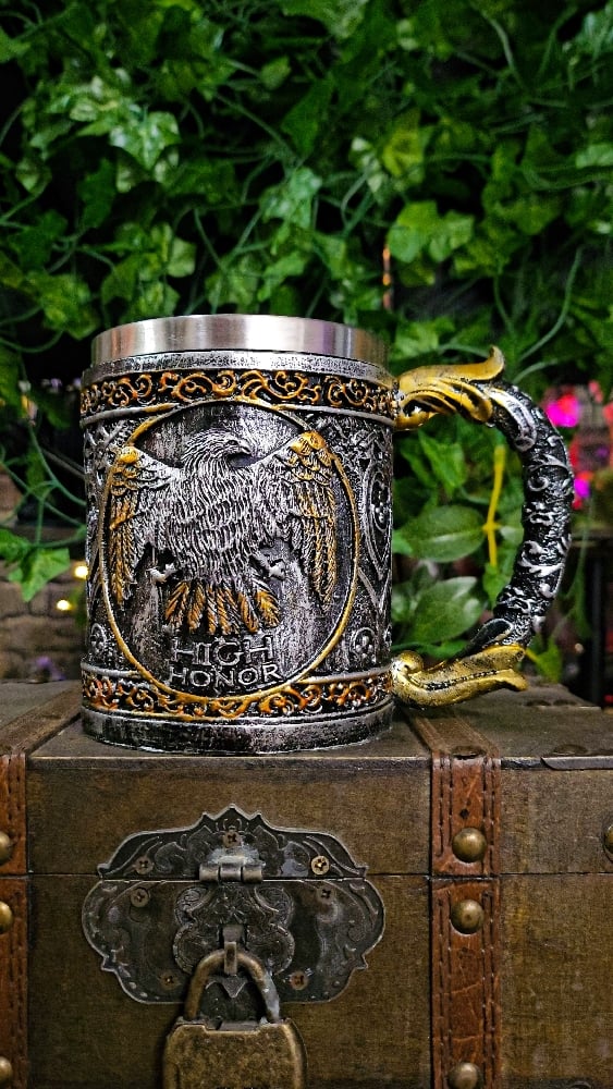 Introducing the Eagle Wings of High Honor Mug, a stunning tribute to the noble virtues of valor, courage, and loyalty. Sculpted in glorious relief with a soaring eagle at its heart, this mug is a battle cry of craftsmanship—built to inspire warriors, knights, nobles, and patriots alike.