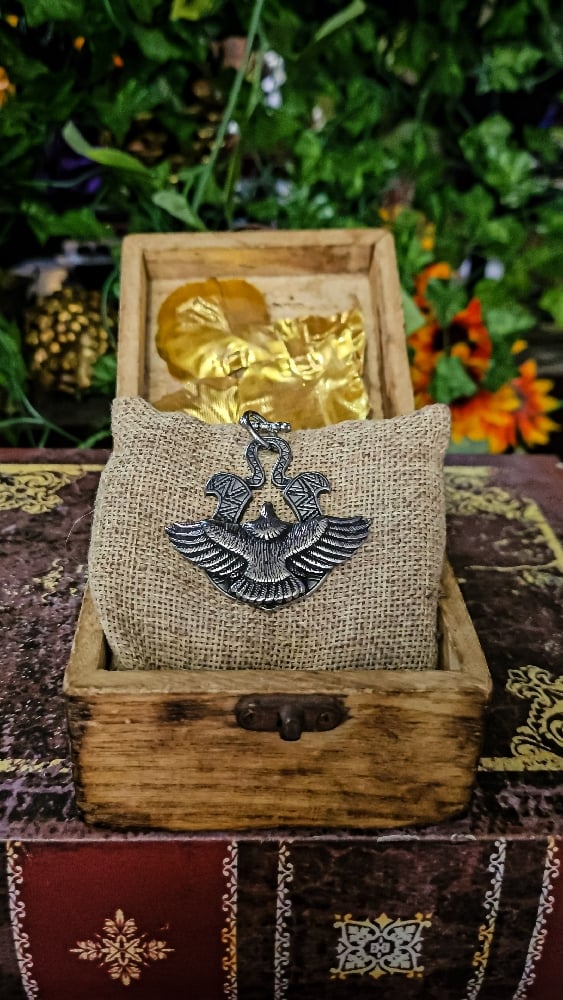 Born from the spirit of ancient empires, the Imperial War Eagle Necklace is more than jewelry — it is a declaration of power. Crafted in antique silver, this double-headed eagle spreads its wings in full command, embodying watchfulness, might, and authority over all horizons.