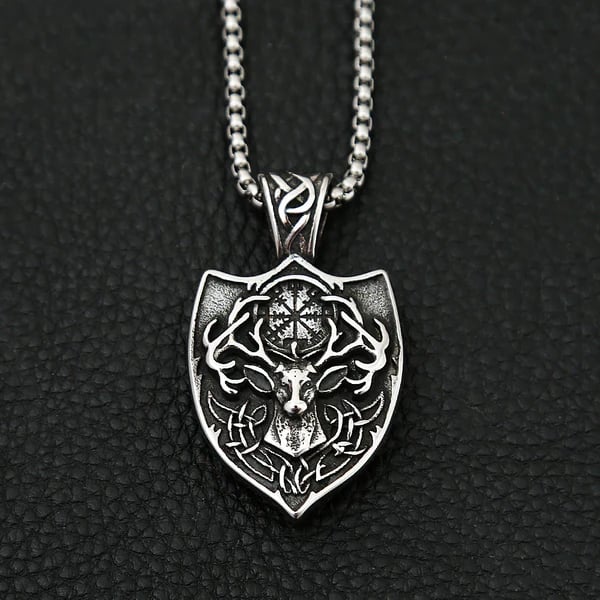 Forged in the spirit of the ancient wilds, the Nordic Deer Head Viking Compass Necklace embodies the primal bond between man, nature, and the unseen realms. Inspired by Celtic and Norse symbolism, this shield-shaped pendant features the mighty deer nature god Cernunnos, a timeless emblem of fertility, life, death, and rebirth.