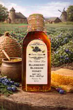 From the verdant fields of the Kingdom of North Carolina and beyond, The Armored Kingdom Blueberry Blossom Honey flows with the essence of blooming blueberry fields and royal craftsmanship. Harvested with care from hives placed beside thriving blueberry farms, this 100% pure, raw, and unfiltered honey captures the taste of spring mornings and dew-kissed blossoms in every golden drop.