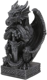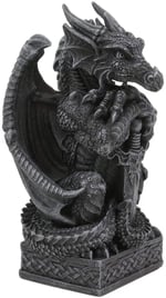 Behold the Draconian Sword Guardian of the Realm Dragon—a stunning masterpiece forged in the spirit of protection and ancient might. This exquisitely crafted statue captures the essence of a mighty dragon, coiled around a majestic sword, an eternal sentinel standing watch over the realm.