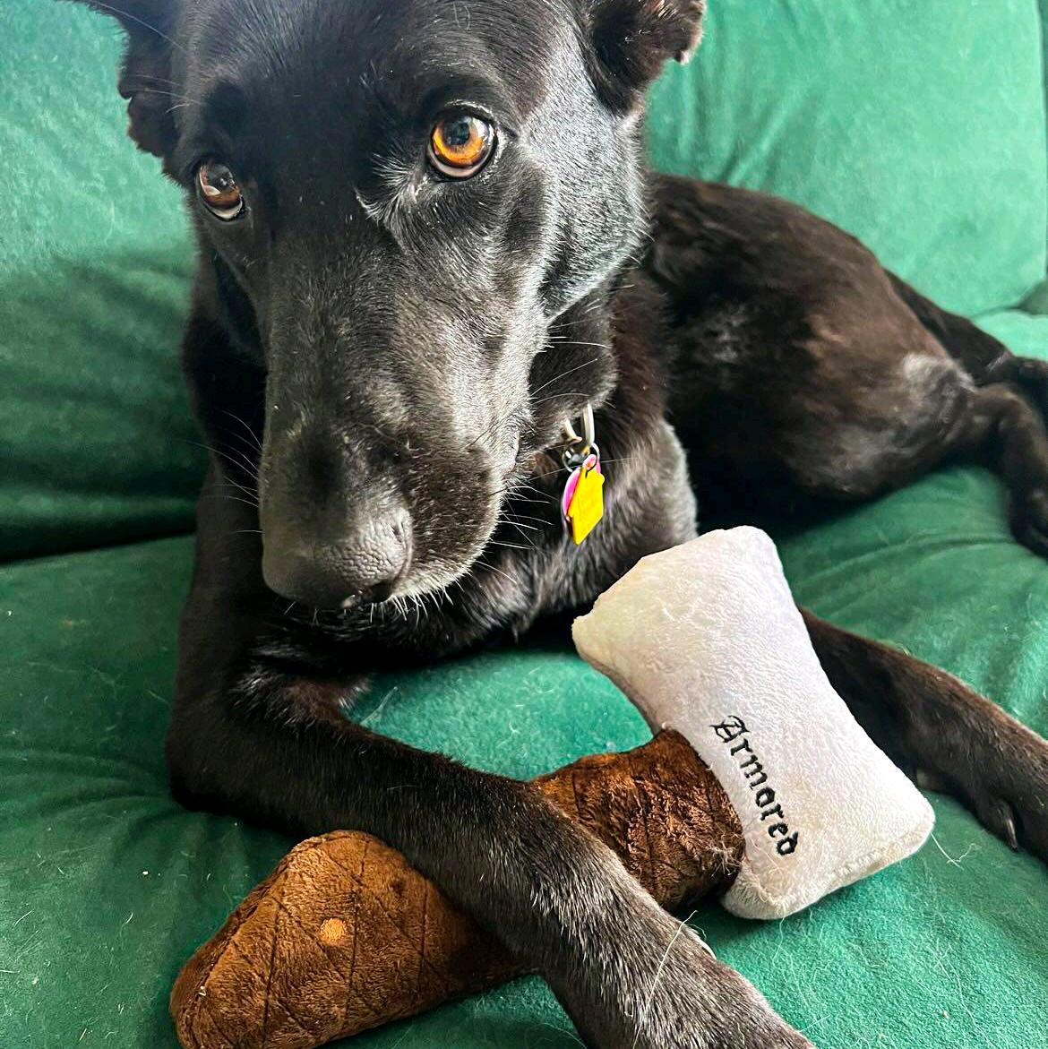 Forged from durable ballistic nylon, filled with soft, snuggly plush, and blessed with a loud, rallying squeaker, the Barkbreaker Axe is perfect for every kind of pup—from backyard berserkers to fireside cuddlers. When the battles end, it transforms into the ultimate snuggle companion for your tired little champion.